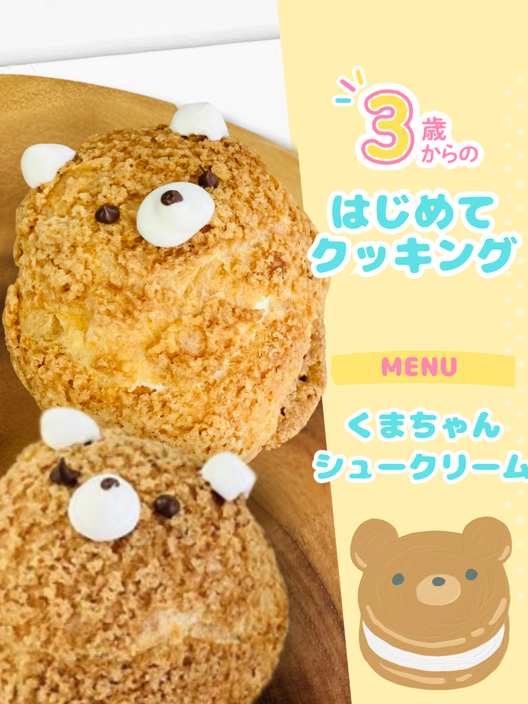 12月13日(日)10:30~ 3歳からのはじめてクッキング 「くまちゃんシュークリーム」 受付開始:11月29日(日)10:00~(先着順)のイベント情報